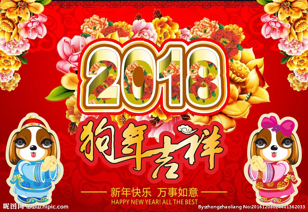 金雞納吉辭舊歲,玉犬呈祥迎新年。