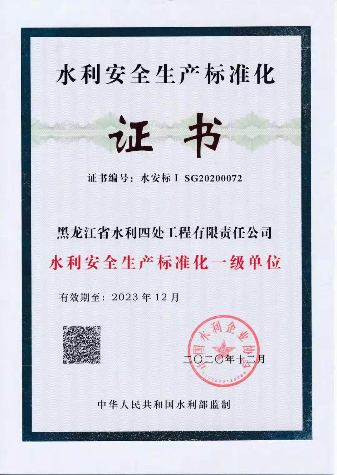 全國(guó)水利安全生產(chǎn)標(biāo)準(zhǔn)化一級(jí)單位