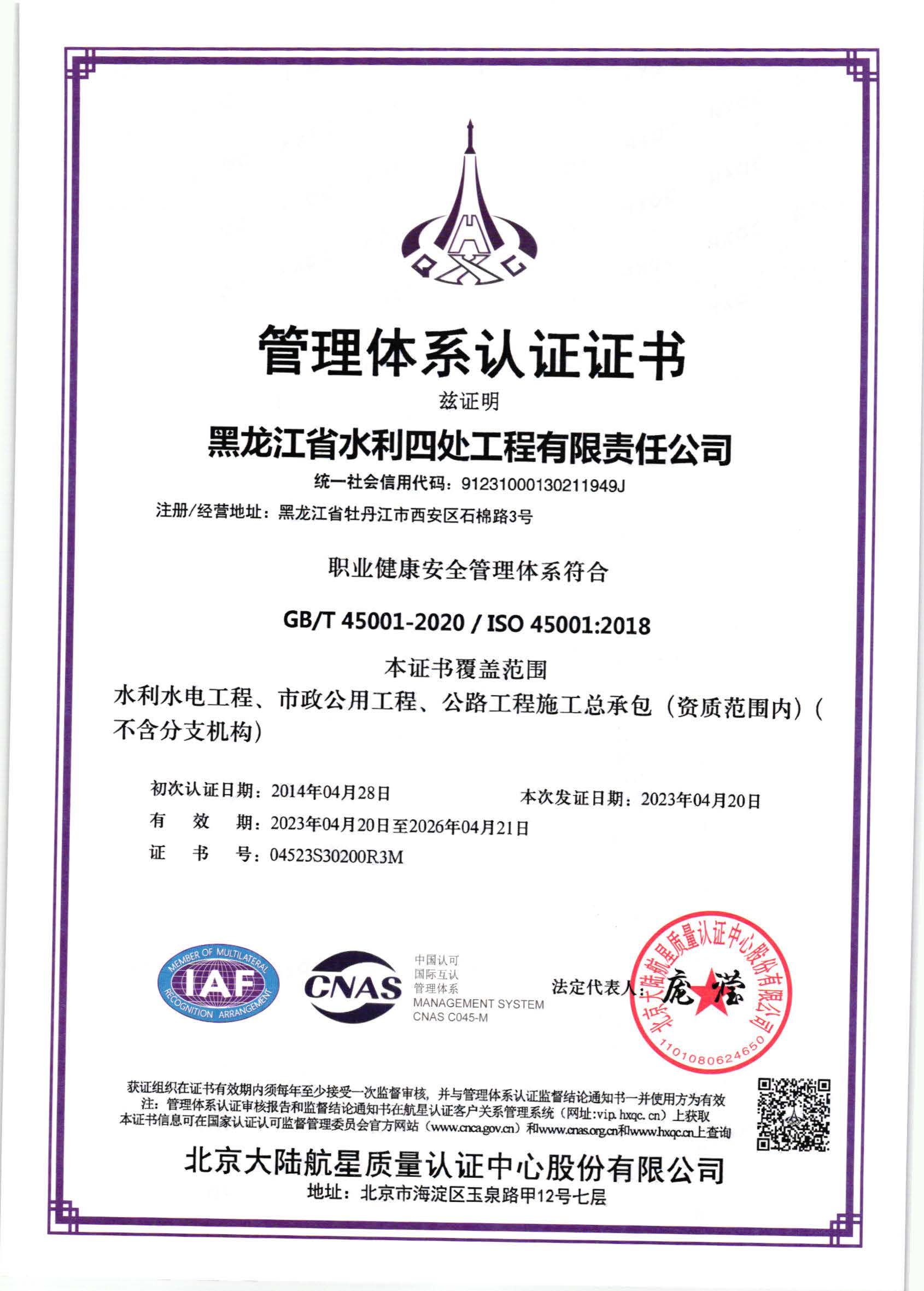 職業(yè)健康安全管理體系證書